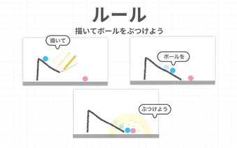 ゲームはステージ制。各ステージに位置するボールとオブジェクトを考慮しながら、線や図形を描いてボールを動かし、ぶつけてクリアさせます。クリアするステージが多くなるほど、プレイ可能なステージが増えます。ステージの数は300以上。あなたはどこまで進める?